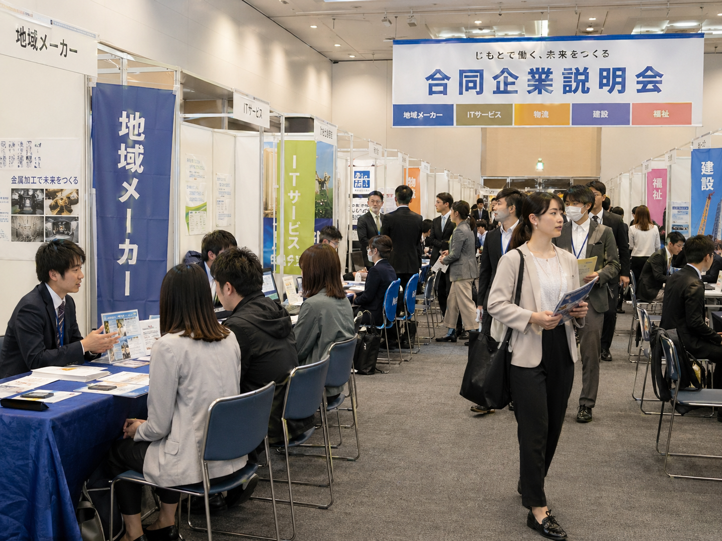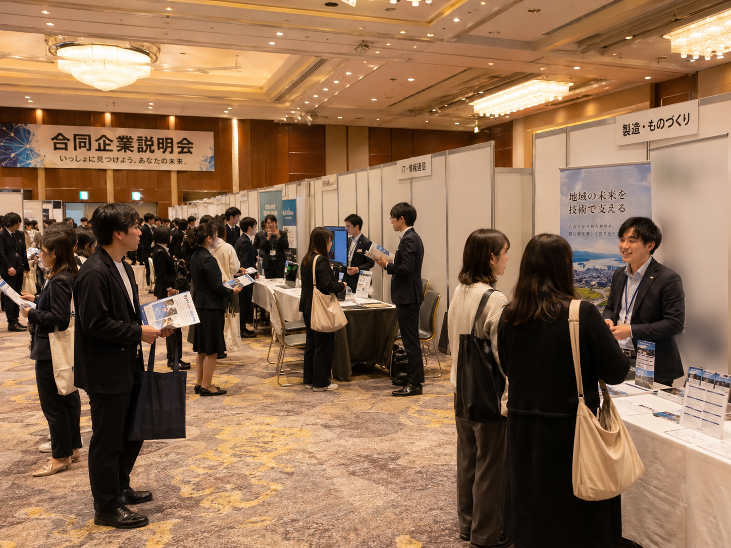 合同・単独問わず、希望のエリアから企業説明会を検索できます。
