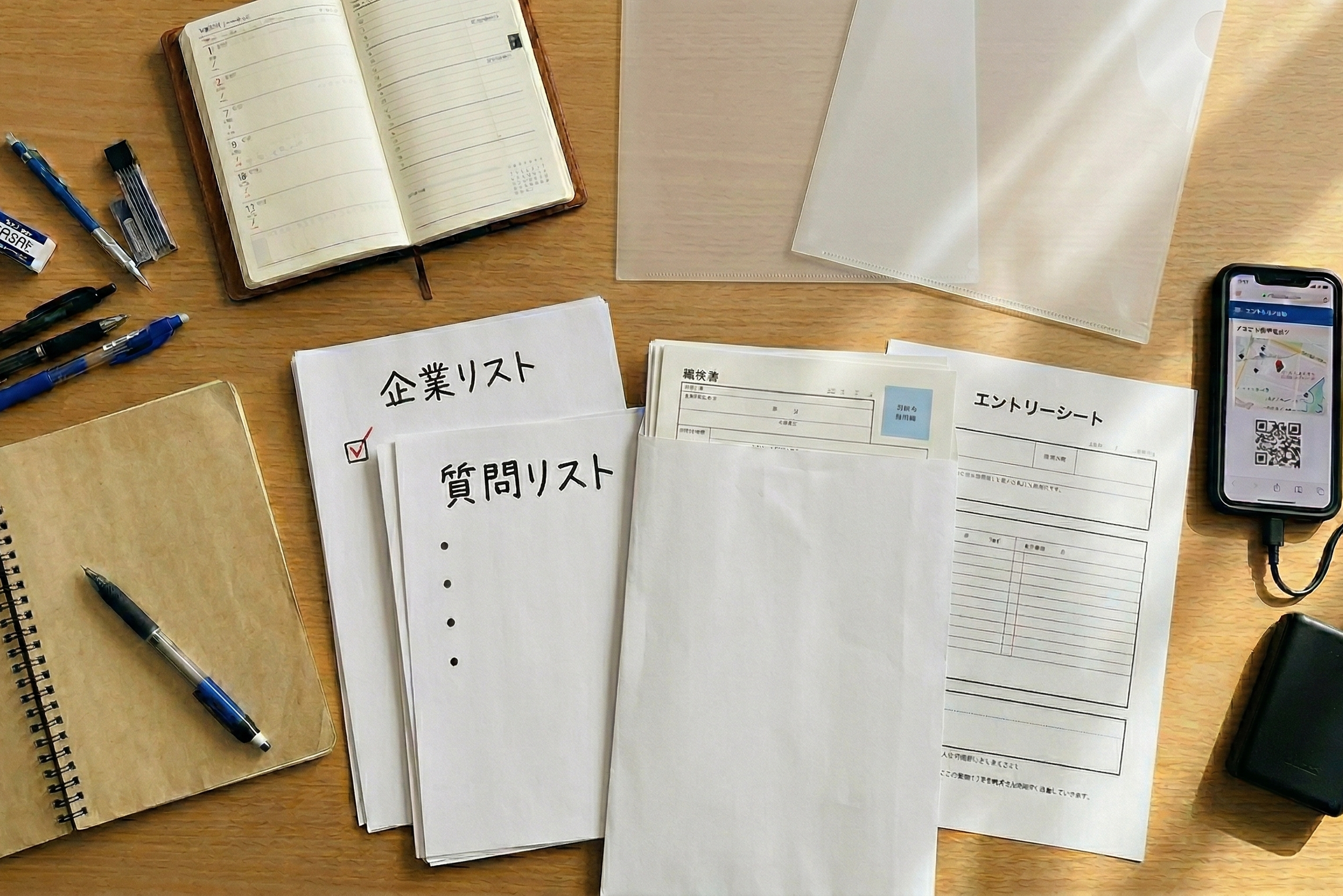 企業から受け取った資料やパンフレットを整理するのに役立ちます。 - 企業リスト・質問リスト