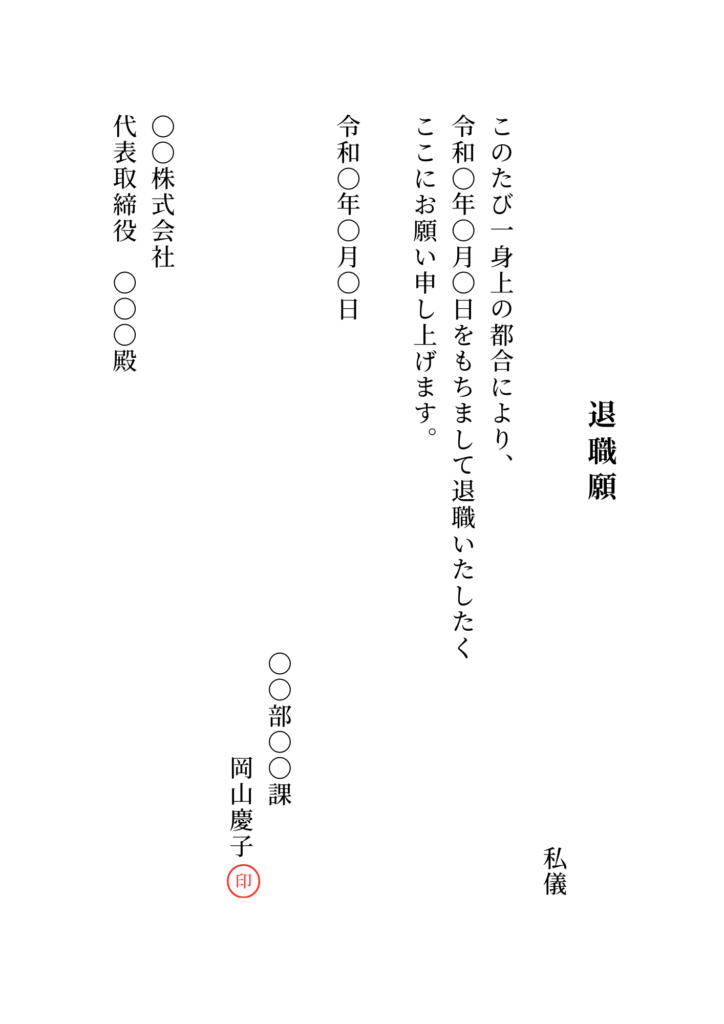 ※本フォーマットは一般的な事例に基づき作成されています。実際の提出にあたっては、お勤め先の就業規則等をご確認ください。本フォーマットの利用によって生じたトラブル等について、当サイトは一切の責任を負いかねます。